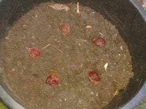 - À l’automne ou au tout début du printemps, insérez le noyau (ou plusieurs, pour mettre toutes les chances de votre côté) à 15-20 cm de profondeur. Les noyaux sont conservés au frais jusqu’au semis, après nettoyage et séchage.