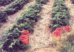 Paillage des semis : n’ hésitez pas à pailler entre les semis, je préfère la paille, qui maintient bien l’humidité dans le sol. Les fraises ne sont pas en contact direct avec le sol, ce qui les protège de la pourriture sous la pluie. En l’absence de paillage, une voile protectrice peut remplir ce bureau.